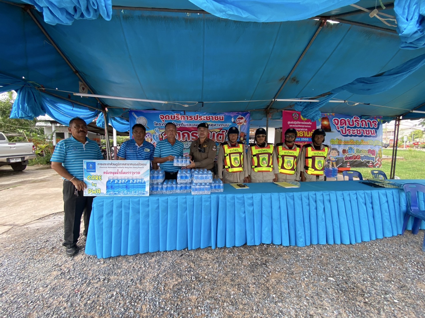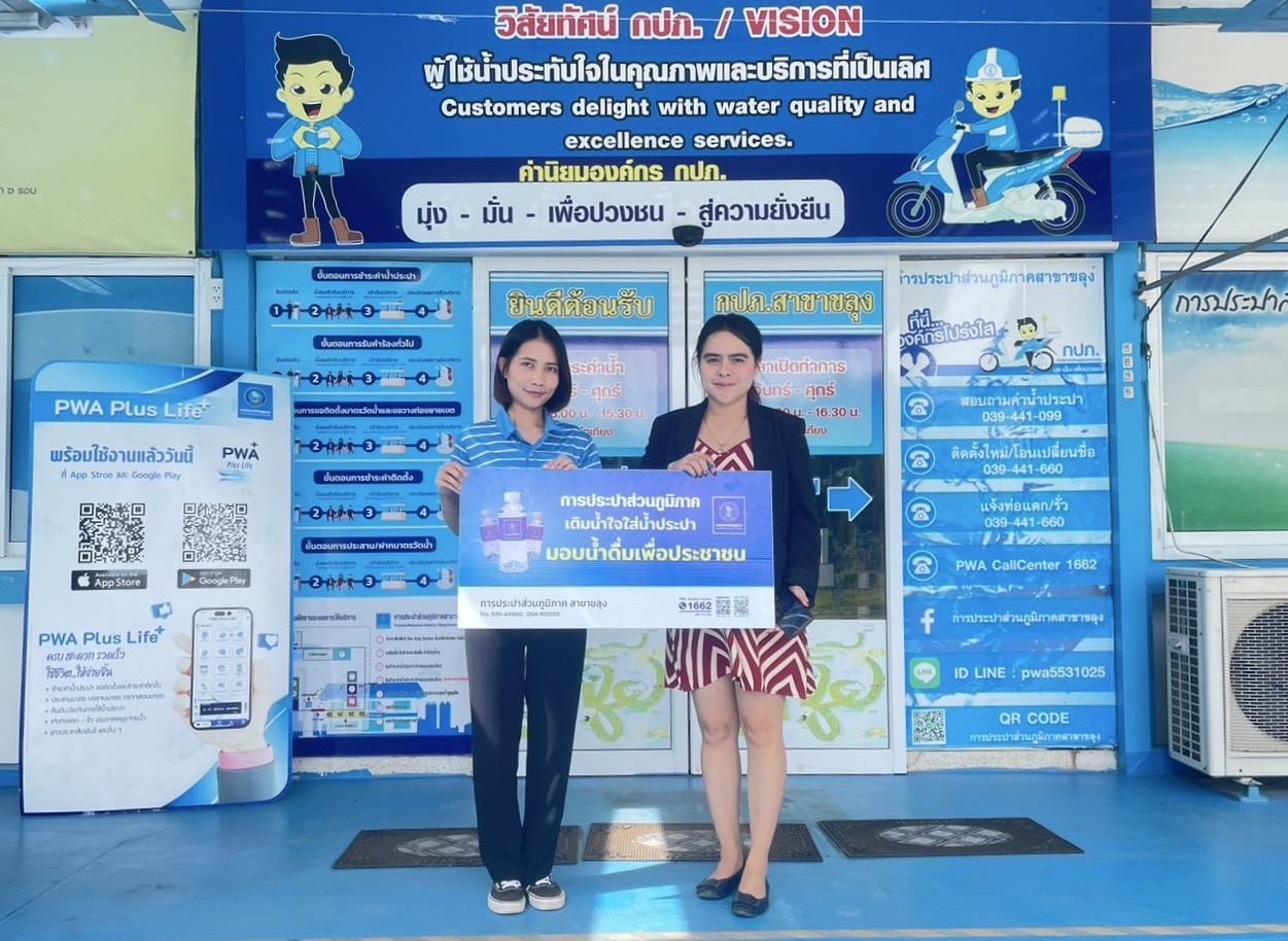 กปภ.สาขากาญจนบุรี มอบน้ำดื่มบรรจุขวดตราสัญลักษณ์