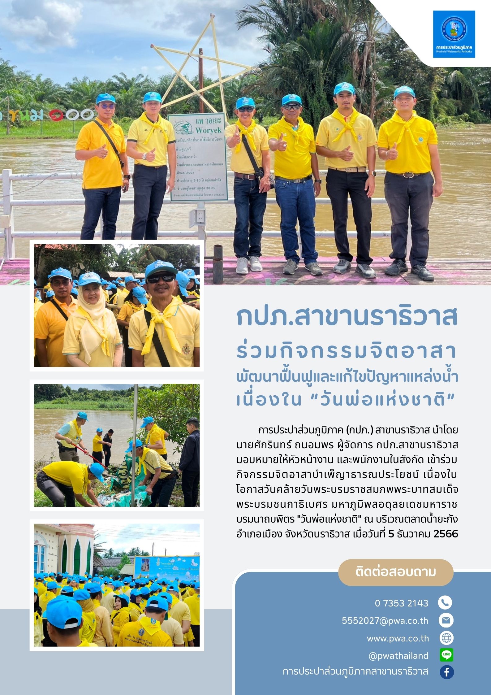 กปภ.สาขาระโนดเข้าร่วมกิจกรรมจิตอาสาพัฒนา ถวายพระราชกุศล เนื่องในโอกาสวันคล้ายวันสวรรคต พระบาทสมเด็จพระปรเมนทรมหาอานันทมหิดล พระอัฐมรามาธิบดินทร (รัชกาลที่ 8) พร้อมสนับสนุนมอบน้ำดื่มบรรจุขวด ตราสัญลักษณ์ กปภ.