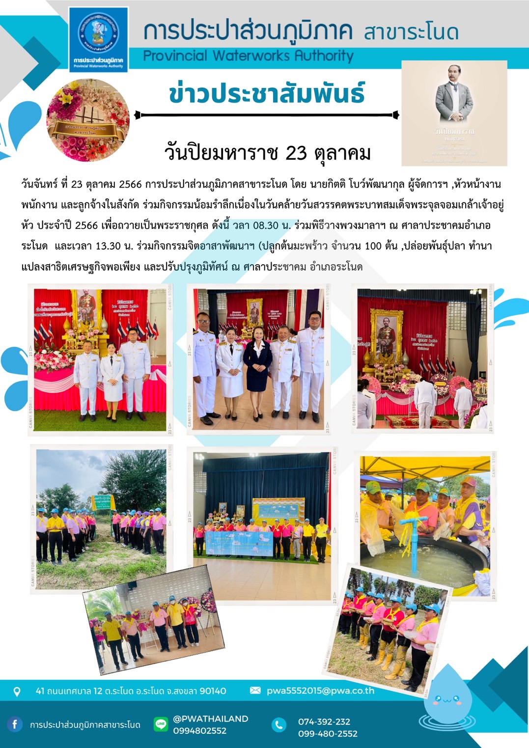 การประปาส่วนภูมิภาคสาขากระบี่ ออกหน่วย One Stop Service บริการรับชำระค่าน้ำประปาและรับคำร้องต่างๆ นอกสถานที่ ประจำเดือน เมษายน 2567