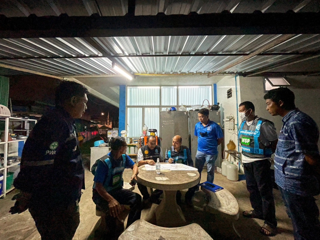 การประปาส่วนภูมิภาคสาขาชุมพร ภายใต้การบริหารงานโดย นายสมเดช ใจสมุทร ผู้จัดการการประปาส่วนภูมิภาคสาขาชุมพร นายวิทยา กำนล ผู้ช่วยผู้จัดการการประปาส่วนภูมิภาคสาขาชุมพร มอบหมายให้เจ้าหน้าที่ทีมงานบริการและควบคุมน้ำสูญเสีย พร้อมด้วยทีมงานผลิต ลงพื้นที่เพื่อเดินสำรวจหาท่อแตกท่อรั่ว บริเวณพื้นที่ถนนปรมินทรมรรคา ตำบลท่าตะเภา อำเภอเมือง จังหวัดชุมพร เมื่อวันที่ 11 ตุลาคม 2565 ตั้งแต่เวลา 21.00 น. ถึงเวลา 02.00 เพื่อลดน้ำสูญเสียในระบบจำหน่ายและเพิ่มแรงดันในเส้นท่อ เป็นการให้บริการน้ำประปาอย่างเต็มประสิทธิภาพตามมาตรฐานของ กปภ.