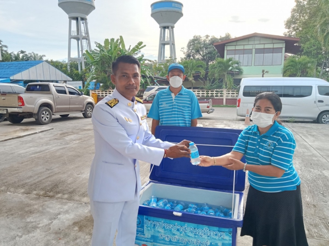 วันที่ 13 ตุลาคม 2565 เวลา 17.00 น.โดยนายสุรพงศ์ สมหวัง ผจก. กปภ.สาขากาญจนดิษฐ์ พร้อมพนักงานในสังกัด กปภ.สาขากาญจนดิษฐ์ ร่วมแจกน้ำดื่มตราสัญญาลักษณ์ กปภ.ให้กับผู้เข้าร่วมพิธีวางพวงมาลาเพื่อน้อมรำลึก ในพระมหากรุณาธิคุณ พระบาทสมเด็จพระบรมชนกาธิเบศรมหาภูมิพลอดุลยเดชมหาราชบรมนาถบพิตรเนื่องใน วันคล้ายวันสวรรคต ณ ศาลาประชาคม ที่ว่าการอำเภอกาญจนดิษฐ์