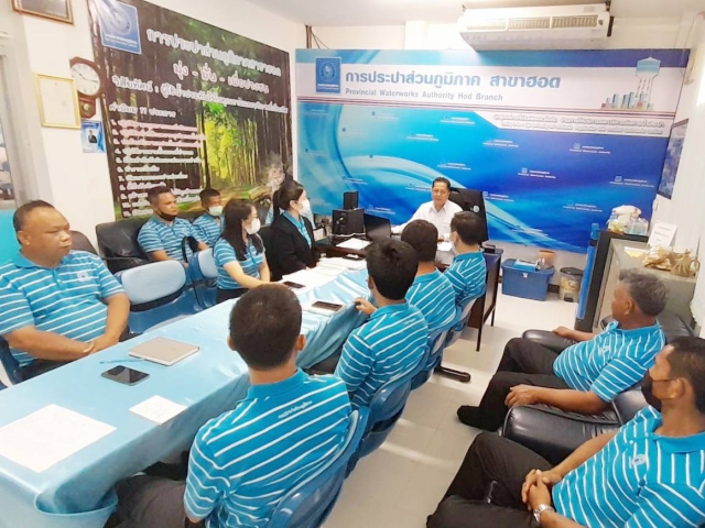 เมื่อวันที่ 11 ตุลาคม 2565 นายวิชาญ พรมมา ผู้จัดการการประปาส่วนภูมิภาคสาขาฮอด พร้อมด้วยหัวหน้างานและพนักงานในสังกัด ร่วมกันจัดกิจกรรมสนทนายามเช้า เพื่อเสริมสร้างวัฒนธรรมองค์กร โดย