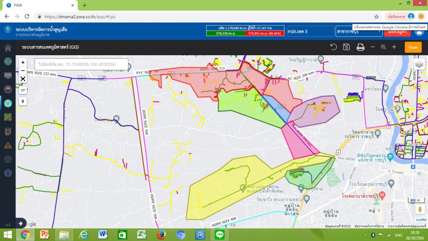 ในวันพุธที่ 26 ตุลาคม 2565 นายนันทวรรธน์ สุขุมานนท์ ผู้จัดการการประปาส่วนภูมิภาคสาขาราชบุรี นางปาริฉัตร ลาภพงศ์พิพัฒน์ ผู้ช่วยผู้จัดการการประปาส่วนภูมิภาคสาขาราชบุรี และนายวีระ อินปิ่น หัวหน้างานบริการและควบคุมน้ำสูญเสีย และพนักงานในสังกัด ร่วมกับ เจ้าหน้าที่งานน้ำสูญเสีย กองระบบจำหน่าย การประปาส่วนภูมิภาคเขต 3 ดำเนินกิจกรรมบริหารจัดการการจ่ายน้ำในพื้นที่ใหม่ เพื่อเพิ่มประสิทธิภาพการจ่ายน้ำและเร่งรัดลดน้ำสูญเสียในพื้นที่จำหน่ายน้ำ