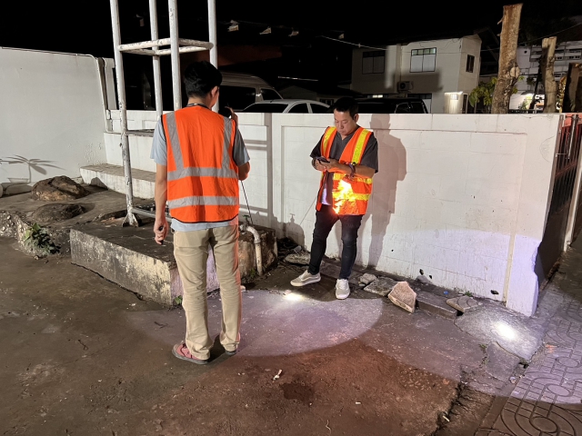 ออกสำรวจหาท่อแตกรั่วพื้นที่ DMA 08 บริเวณหลังสำนักงาน กปภ. เนื่องจากน้ำจ่ายเพิ่มขึ้น พบจุดรั่ว ทั้งหมด 7 จุด โดยได้เร่งดำเนินการซ่อมทันที