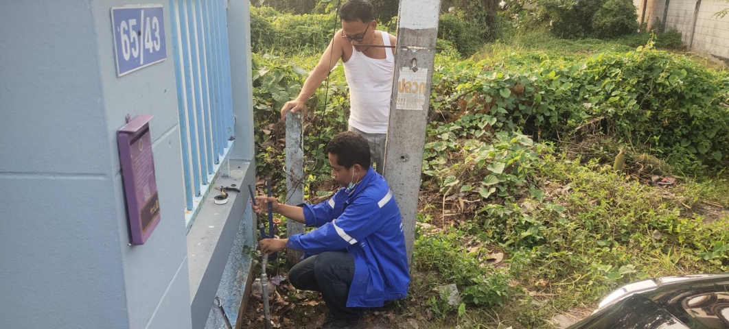 หลังได้รับแจ้งให้ตรวจสอบข้อต่อมาตรชำรุด ณ บ้านเลขที่ 65/47 ม.2 ต.นครชุม อ.เมือง จ.กำแพงเพชร จึงได้ส่งมิสเตอร์ประปาตรวจสอบทันที พบว่าไม่มีพวงมาลัยประตูน้ำทองเหลือง ทำให้ปิดเปิดน้ำไม่ได้ จึงได้ดำเนินการใส่พวงมาลัยประตูน้ำทองเหลืองให้เสร็จเรียบร้อย