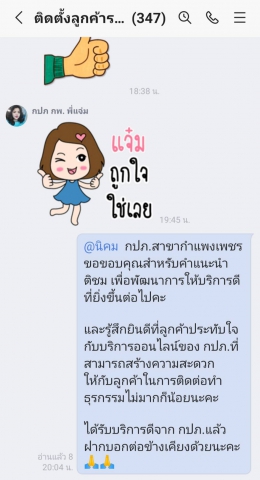 " ขอขอบคุณ นส.เสาวลักษณ์ คุ้มคงศักดิ์ ที่ดำเนินการทางออนไลน์ให้ผู้ขอติดตั้งมาตรน้ำรายใหม่และผ่อนชำระ สะดวก รวดเร็วทันใจจริงๆครับ มี 5 ราย และคาดว่าในเดือนธันวาคมนี้น่าจะมีลูกค้ารายใหม่เพิ่มอีกอย่างแน่นอน ขอบคุณครับ "