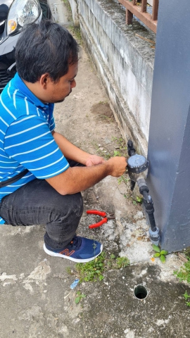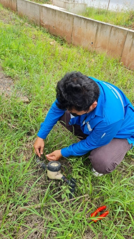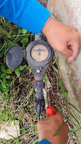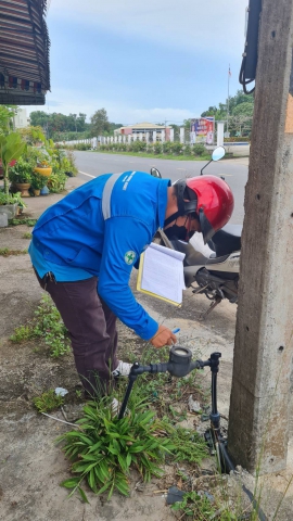 การประปาส่วนภูมิภาคสาขาจันดี ลงพื้นที่ตรวจสอบมาตรวัดน้ำ ทดสอบมาตร 0 คิว และทำการตีตรามาตร ผูกลวด
