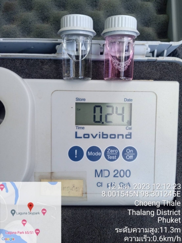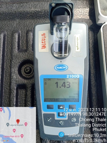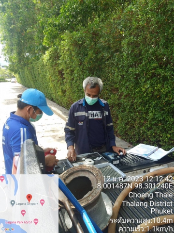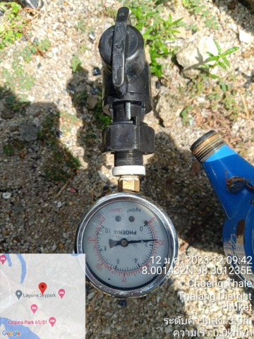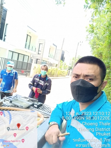 งานบริการและควบคุมน้ำสูญเสีย 2 กปภ.สาขาภูเก็ต ดำเนินการตรวจสอบคุณภาพน้ำประปาบริเวณหมู่บ้านลากูน่า พาร์ค ต.เชิงทะเล อ.ถลาง ในวันที่ 12 มกราคม 2566