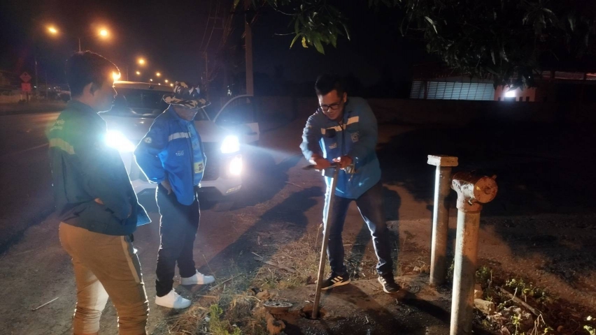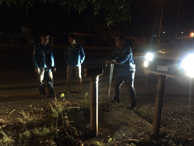 คืนวันที่ 26 มกราคม 2566 นายพิชัย พันธุ์อร่าม ผจก.กปภ.สาขากาญจนบุรี มอบหมายให้ นายอัยรัตน์ ฉันทวิริยวัฒน์ หัวหน้างานบริการและควบคุมน้ำสูญเสีย และทีมงาน ลงพื้นที่ทำ Step Test ออกสำรวจค้นหาท่อแตก – รั่ว ณ DMA 16 บริเวณพื้นที่ริมถนนแสงชูโต ตั้งแต่ปากซอยแสงชูโตซอย 6/1 ไปจนถึง หน้าศูนย์โตโยต้ากาญจนบุรี ตำบลปากแพรก อำเภอเมือง จังหวัดกาญจนบุรี ซึ่งเป็นสาเหตุของการเกิดน้ำสูญเสียในระบบเส้นท่อ พร้อมดำเนินการซ่อมแซมแก้ไขอย่างทันท่วงที เพื่อมุ่งเป้าลดปัญหาน้ำสูญเสียและเพิ่มประสิทธิภาพการส่งจ่ายน้ำประปาให้แก่ลูกค้า