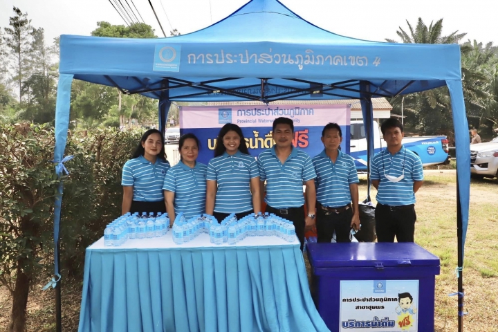 นายประทีป กุศลวัฒนะ ผอ.กปภ.ข.4 พร้อมด้วยคณะผู้บริหาร และพนักงานในสังกัด ร่วมออกบูธบริการน้ำดื่มบรรจุขวดตราสัญลักษณ์ กปภ. แก่ เจ้าหน้าที่ ประชาชน และผู้มาร่วมให้การต้อนรับ พลเอก ประวิตร วงษ์สุวรรณ รองนายกรัฐมนตรี พร้อมคณะ เนื่องในโอกาสลงพื้นที่ตรวจราชการ จ.สุราษฎร์ธานี, จ.ชุมพร และ จ.ระนอง เมื่อวันที่ 13 มีนาคม 2566 โดยมี กปภ.สาขาเกาะสมุย, กปภ.สาขาชุมพร, กปภ.สาขาหลังสวน, กปภ.สาขาท่าแซะ และ กปภ.สาขาระนอง ร่วมออกบูธบริการน้ำดื่มในกิจกรรมครั้งนี้ด้วย