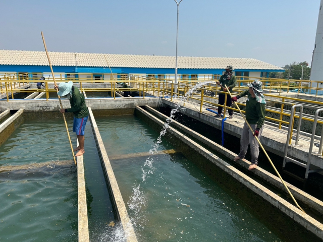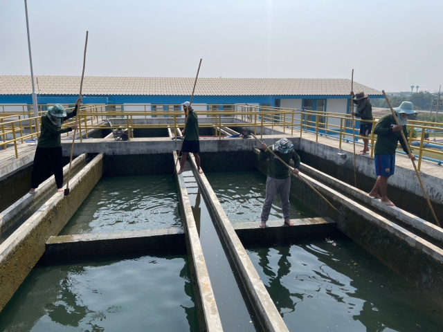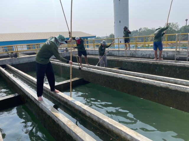 วันที่ 18 และ 19 มีนาคม 2566 นายประนต ศรีสุนทร ผจก.กปภ.สาขาท่ามะกา มอบหมายให้ นายโยธิน พลเรือง หัวหน้างานผลิต พร้อมพนักงาน และเจ้าหน้าที่สายงานผลิต ร่วมกันดำเนินการล้างถังตกตะกอน ตามแนวทางการดำเนินการโครงการจัดการน้ำสะอาด (WSP) ประจำเดือนมีนาคม 2566 ถังตกตะกอนขนาด 1,000 และ 800 ลบ.ม. เพื่อให้ได้น้ำสะอาดปลอดภัย มั่นใจ และมีมาตรฐาน พร้อมดำเนินการตามมาตรการป้องกันและเฝ้าระวังสถานการณ์จากการแพร่ระบาดเชื้อไวรัส และมั่นใจในกระบวนการผลิตน้ำประปาปลอดภัยจาก COVID-19 ณ สถานีผลิตจ่ายน้ำท่าม่วง อ.ท่าม่วง จ.กาญจนบุรี เพื่อคงคุณภาพน้ำประปาให้ได้ตามมาตรฐาน กปภ.