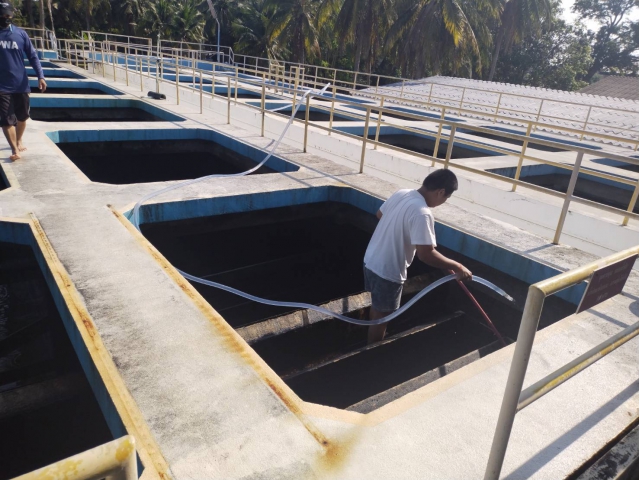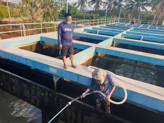 ในวันอังคาร ที่ 4 เมษายน 2566 การประปาส่วนภูมิภาคสาขาประจวบคีรีขันธ์ โดย นายศิริทัย สวัสดิ์อารี ผจก.กปภ.สาขาประจวบคีรีขันธ์ มอบหมายให้ นายสุขเกษม มีสีผ่อง หัวหน้างานผลิต พร้อมด้วยพนักงาน/ลูกจ้างในสังกัด ดำเนินการล้างถังตกตะกอนโรงกรองขนาด 400 ลบม./ชม. ฝั่งตะวันตก และโรงกรองขนาด 200 ลบม./ชม. ตามแผนการดำเนินงานโครงการจัดการน้ำสะอาด (Water Safety Plan) เพื่อรักษามาตรฐานคุณภาพน้ำประปาและสร้างความมั่นใจให้กับลูกค้าในการอุปโภค – บริโภค