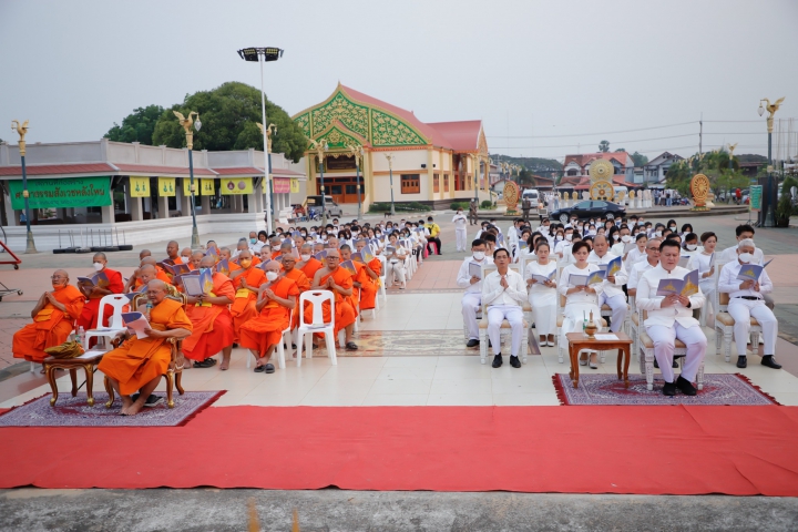 โดยมี นายชาธิป รุจนเสรี ผู้ว่าราชการจังหวัดกำแพงเพชร เป็นประธานพิธีเจริญพระพุทธมนต์ พร้อมด้วยหัวหน้าหน่วยงานราชการ หน่วยงานภาคเอกชน เจ้าหน้าที่ฯ และประชาชนเข้าร่วมพิธี เพื่อยกย่องเชิดชูสถาบันพระมหากษัตริย์และราชวงศ์จักรี ทุกพระองค์ โดยมีพระราชวชิรเมธี เจ้าคณะจังหวัดกำแพงเพชร เจ้าอาวาสวัดพระบรมธาตุ (พระอารามหลวง) เป็นประธานสงฆ์