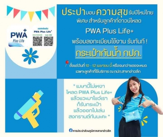 โชว์ แอปพลิเคชั่นPWA Plus Life+ บนมือถือ ณ กปภ.สาขาอ่าวลึก รับทันที