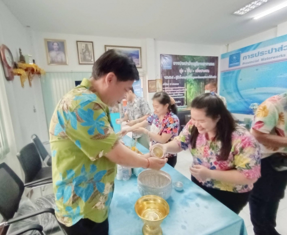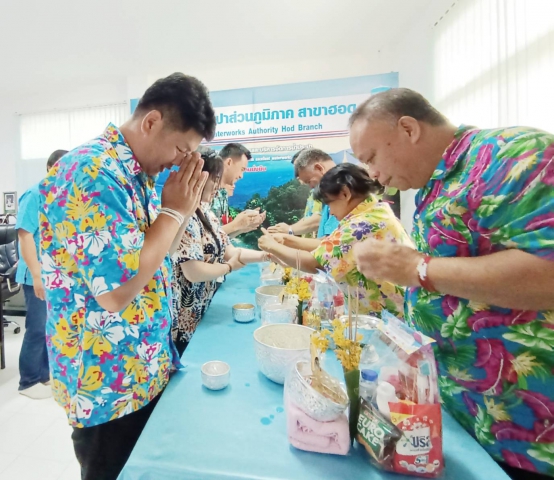 การประปาส่วนภูมิภาคสาขาฮอด จัดกิจกรรมสืบสานป๋าเวณีปี๋ใหม่เมือง สรงน้ำพระ รดน้ำดำหัวผู้จัดการและผู้อาวุโส ประจำปี 2566