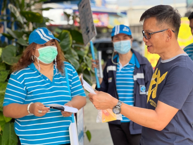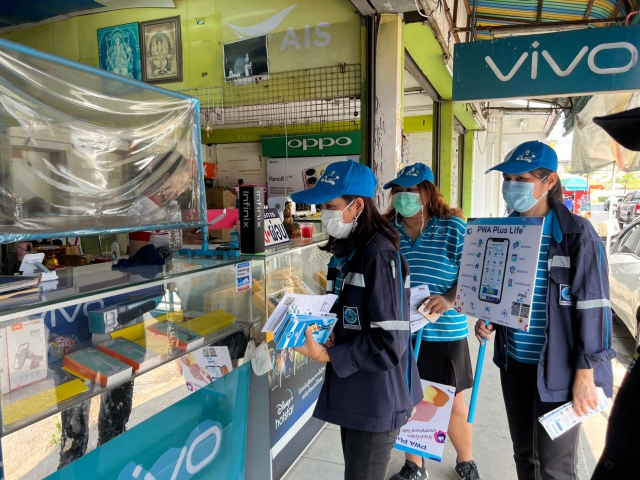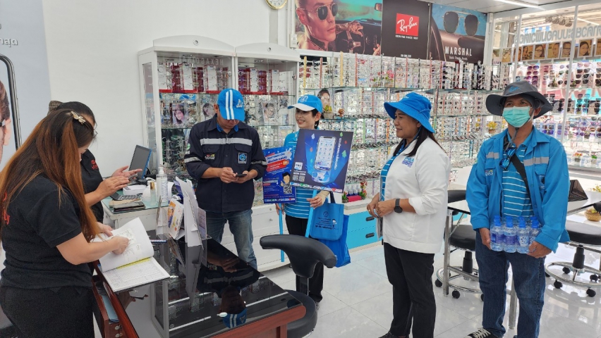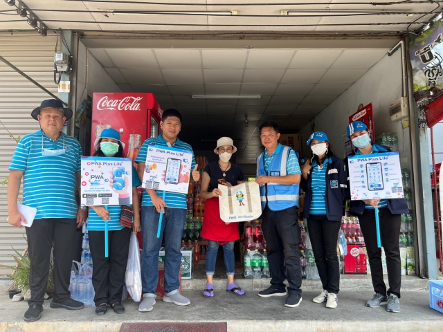 วันจันทร์ ที่ 24 เมษายน 2566 เวลา 09.00 น. กปภ.สาขาอ้อมน้อย นำโดยนางราตรี อักษรอินทร์ ผจก.กปภ.สาขาอ้อมน้อย พร้อมด้วยนายปกรณ์ บัวทอง ผช.ผจก. หัวหน้างานและพนักงานในสังกัด ร่วมจัดกิจกรรม "โครงการมุ่งมั่นเพื่อปวงชน เติมใจให้กัน " ลงพื้นที่เดินสำรวจ ตรวจสอบระบบประปาหน้าบ้านของลูกค้า พูดคุยสอบถามถึงการใช้น้ำประปา พร้อมแนะนำช่องทางการชำระค่าน้ำออนไลน์ ผ่านช่องทาง Line Official (@pwathailand), แอปพลิเคชั่น PWA Plus Life ของ กปภ. และยังได้มอบของที่ระลึกให้กับลูกค้า (น้ำดื่มบรรจุขวด และกระเป๋าผ้า กปภ.) ทั้งนี้ เพื่อเป็นการสร้างความสะดวก สบาย และรวดเร็ว ในการชำระค่าน้ำประปา พร้อมส่งเสริมภาพลักษณ์อันดีขององค์กร สร้างความสัมพันธ์ที่ดีระหว่าง กปภ.สาขากับลูกค้า ณ ตลาดเก้าแสน อ.กระทุ่มแบน ต.อ้อมน้อย จ.สมุทรสาคร