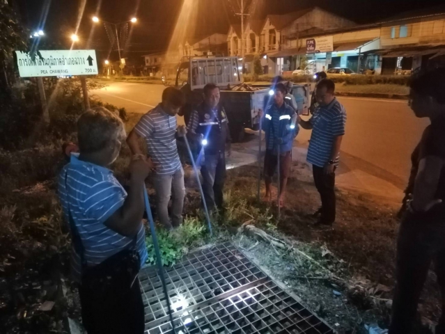 การประปาส่วนภูมิสาขาจันดี ลงพื้นที่เดินสำรวจหาท่อแตก-ท่อรั่ว