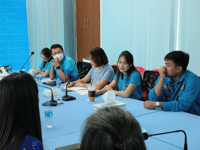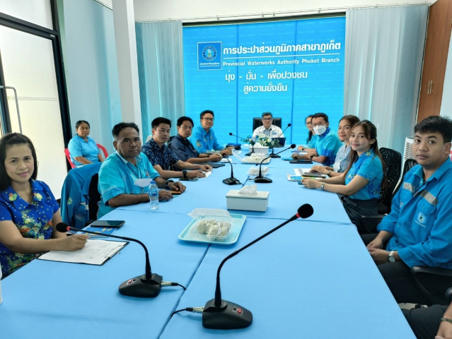 อีกทั้งหัวหน้างานแต่ละสายงาน พูดคุยถึงการทำงานและปัญหาต่างๆ ที่มีในการปฏิบัติงาน และร่วมกันแนะแนวทางในการแก้ไขปัญหาในการปฏิบัติงาน เพื่อให้งานสำเร็จเป็นไปตามเป้าหมายที่วางไว้ ณ ห้องประชุม SCADA การประปาส่วนภูมิภาคสาขาภูเก็ต