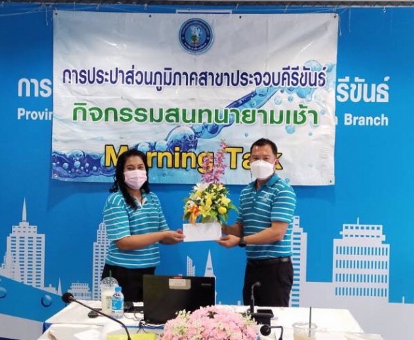 ในวันศุกร์ ที่ 28 เมษายน 2566 การประปาส่วนภูมิภาคสาขาประจวบคีรีขันธ์ นำโดย นายศิริทัย สวัสดิ์อารี ผจก.กปภ.สาขาประจวบคีรีขันธ์ พร้อมด้วยหัวหน้างาน พนักงานและลูกจ้างในสังกัด ร่วมกิจกรรมสนทนายามเช้า (Morning talk) ครั้งที่ 7/2566 ณ ห้องประชุมการประปาส่วนภูมิภาคสาขาประจวบคีรีขันธ์ การจัดกิจกรรมครั้งนี้เพื่อให้เกิดความผูกพันภายในองค์กรได้แลกเปลี่ยนความคิดเห็นระหว่างพนักงาน/ลูกจ้างในสังกัด ผู้จัดการฯ ได้ถ่ายทอดนโยบายจากผู้บริหารให้พนักงานสังกัดรับทราบและนำไปปฏิบัติ ประชาสัมพันธ์ แอพลิเคชั่น PWA Plus Life รายงานผลการดำเนินงานที่ผ่านมา ติดตามการดำเนินงานเพื่อต่ออายุโครงการศูนย์ราชการสะดวก (GECC) ต้อนรับพนักงานใหม่ ได้แก่ น.ส.วรีรัตน์ อักษรเงิน นักบัญชี 7 สังกัดงานอำนวยการ และมอบรางวัลพนักงานบริการดีเด่น (front Office) ได้แก่ น.ส.นฤมล พุ่มชื่น พนักงานการเงินและบัญชี 7 สังกัดงานจัดเก็บรายได้ และ ได้สอบถามปัญหา อุปสรรคในการดำเนินงาน และหาแนวทางการแก้ไขปัญหาร่วมกันต่อไป