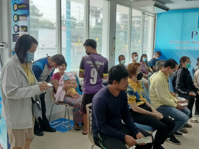 หยุดยาวมาหลายวัน ลูกค้าแห่ติดต่อทำธุรกรรมที่ กปภ.สาขากำแพงเพชร แน่นขนัด ส่งพนักงานชวนโหลดแอป PWA Plus Life รวมบริการครบจบในแอปเดียว
