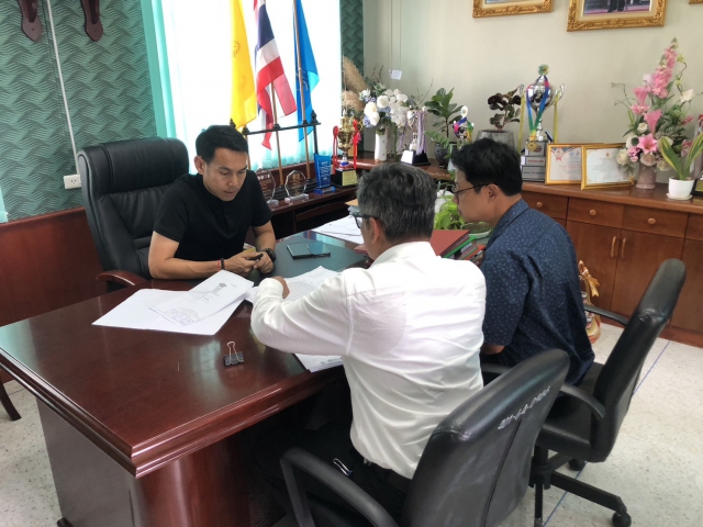 การประปาส่วนภูมิภาคสาขาภูเก็ต เข้าพบนายกเทศมนตรีตำบลศรีสุนทร เพื่อหารือแนวทางการก่อสร้างฝายชั่วคราว บริเวณคลองบ้านยาเพื่อรองรับสถานการณ์ภัยแล้ง