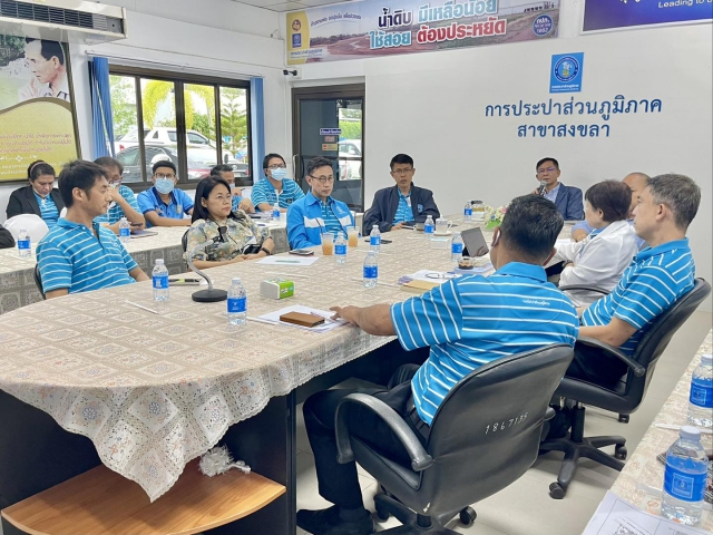 เมื่อวันที่ 10 พ.ค. 2566 นายสุรชัย เชื้อแพ่ง รองผู้ว่าการการประปาส่วนภูมิภาค (รปก.5) พร้อมด้วยคณะผู้บริหาร กปภ.ข.5 ลงพื้นที่ตรวจเยี่ยมการประปาส่วนภูมิภาคสาขาสงขลา โดยมีนายสัญญา ขั้วแก้ว ผู้จัดการการประปาส่วนภูมิภาคสาขาสงขลา นายวุฒิพงษ์ ศรีสุวรรณ ผู้ช่วยผู้จัดการการประปาส่วนภูมิภาคสาขาสงขลา พร้อมด้วยหัวหน้างานและพนักงานในสังกัด ให้การต้อนรับ ชี้แจงผลการดำเนินงานด้านต่างๆ ของ กปภ.สาขาสงขลา ซึ่ง รปก.5 ได้ติดตามเรื่องน้ำสูญเสีย จำนวนผู้ใช้น้ำ การขยายพื้นที่ให้บริการน้ำประปาในอนาคต และหารือวิธีการดำเนินงานในด้านต่างๆ เพื่อให้ประชาชนในพื้นได้ใช้บริการน้ำประปาอย่างมีคุณภาพ และเกิดประโยชน์สูงสุด