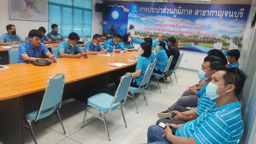 วันอังคารที่ 16 พฤษภาคม 2566 การประปาส่วนภูมิภาคสาขากาญจนบุรี นำโดย นายพิชัย พันธุ์อร่าม ผจก.กปภ.สาขากาญจนบุรี พร้อมด้วยพนักงานในสังกัด ร่วมดำเนินกิจกรรมสนทนายามเช้า (Morning Talk) ครั้งที่ 8/2566 ติดตามผลการดำเนินงาน และกำหนดการออกหน่วยรับคำร้องติดตั้งมาตรใหม่นอกสถานที่ เพื่อเพิ่มผู้ใช้น้ำรายใหม่ให้เป็นไปตามเป้าหมาย ซักซ้อมการสุ่มมาตรวัดน้ำรายใหญ่ ติดตามการฝึกอบรมผ่านระบบ websiteTDGA และยังร่วมกันหาแนวทางแก้ไขปัญหาอุปสรรคในการทำงาน เพื่อให้การปฏิบัติงานเป็นไปอย่างมีประสิทธิภาพ