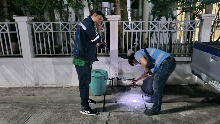 เมื่อคืนวันจันทร์ที่ 15 พฤษภาคม 2566 การประปาส่วนภูมิภาคสาขาธัญบุรี (กปภ.สาขาธัญบุรี) นำโดยนายนคร ขอแนบกลาง ผู้จัดการการประปาส่วนภูมิภาคสาขาธัญบุรี พร้อมด้วยผู้ช่วยผู้จัดการการประปาส่วนภูมิภาคสาขาธัญบุรี, หัวหน้างานผลิต, หัวหน้างานบริการและควบคุมน้ำสูญเสีย 1, หัวหน้างานบริการและควบคุมน้ำสูญเสีย 2 และพนักงานในสังกัด ดำเนินงานตามแผนบริหารจัดการน้ำสูญเสียเชิงรุก ลงพื้นที่สำรวจหาท่อแตกท่อรั่ว ซึ่งเป็นสาเหตุของการเกิดน้ำสูญเสียในระบบเส้นท่อในพื้นที่เขตจำหน่ายน้ำ โดยวิธีเดินสำรวจ (Active Leak Control) บริเวณภายในหมู่บ้านฟ้าปิยรมย์ เฟส 5 คลอง 6 ต.บึงคำพร้อย อ.ลำลูกกา จ.ปทุมธานี เพี่อลดปริมาณน้ำสูญเสียในระบบจำหน่าย และเพิ่มปริมาณน้ำจ่ายให้ลูกค้าได้ดียิ่งขึ้น ทั้งนี้เพื่อให้เป็นไปตามแผนยุทธศาสตร์การลดน้ำสูญเสียของการประปาส่วนภูมิภาค