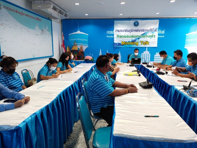 ในวันพฤหัสบดีที่ 18 พฤษภาคม 2566 การประปาส่วนภูมิภาคสาขาประจวบคีรีขันธ์ นำโดย นายศิริทัย สวัสดิ์อารี ผจก.กปภ.สาขาประจวบคีรีขันธ์ พร้อมด้วยหัวหน้างาน พนักงานและลูกจ้างในสังกัด ร่วมกิจกรรมสนทนายามเช้า (Morning talk) ครั้งที่ 8/2566 ณ ห้องประชุมการประปาส่วนภูมิภาคสาขาประจวบคีรีขันธ์ การจัดกิจกรรมครั้งนี้เพื่อให้เกิดความผูกพันภายในองค์กรได้แลกเปลี่ยนความคิดเห็นระหว่างพนักงาน/ลูกจ้างในสังกัด ผู้จัดการฯ ได้ถ่ายทอดนโยบายจากผู้บริหารให้พนักงานสังกัดรับทราบและนำไปปฏิบัติ ถ่ายทอด VDO ความรู้เรื่องทักษะของพนักงานที่ กปภ. ต้องการ ภายในปี 2570 และกลยุทธ์ในการบริหารคน (HR Strategy) ประจำเดือนพฤษภาคม 2566 ให้พนักงานรับทราบ ประชาสัมพันธ์แอพลิเคชั่น PWA Plus Life แอพลิเคชั่น ThaiD รายงานผลการดำเนินงานที่ผ่านมา แจ้งความคืบหน้าการตรวจประเมินศูนย์ราชการสะดวก (GECC)และ ได้สอบถามปัญหา อุปสรรคในการดำเนินงาน และหาแนวทางการแก้ไขปัญหาร่วมกันต่อไป