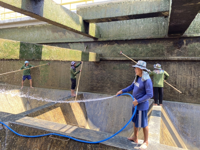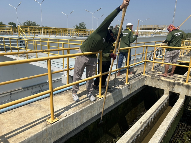 วันที่ 20 และ 21 พฤษภาคม 2566 นายประนต ศรีสุนทร ผจก.กปภ.สาขาท่ามะกา มอบหมายให้ นายโยธิน พลเรือง หัวหน้างานผลิต พร้อมพนักงาน และเจ้าหน้าที่สายงานผลิต ร่วมกันดำเนินการล้างถังตกตะกอน ตามแนวทางการดำเนินการโครงการจัดการน้ำสะอาด (WSP) ประจำเดือนพฤษภาคม 2566 ถังตกตะกอนขนาด 1,000 และ 800 ลบ.ม. เพื่อให้ได้น้ำสะอาดปลอดภัย มั่นใจ และมีมาตรฐาน พร้อมดำเนินการตามมาตรการป้องกันและเฝ้าระวังสถานการณ์จากการแพร่ระบาดเชื้อไวรัส และมั่นใจในกระบวนการผลิตน้ำประปาปลอดภัยจาก COVID-19 ณ สถานีผลิตจ่ายน้ำท่าม่วง อ.ท่าม่วง จ.กาญจนบุรี เพื่อคงคุณภาพน้ำประปาให้ได้ตามมาตรฐาน กปภ.