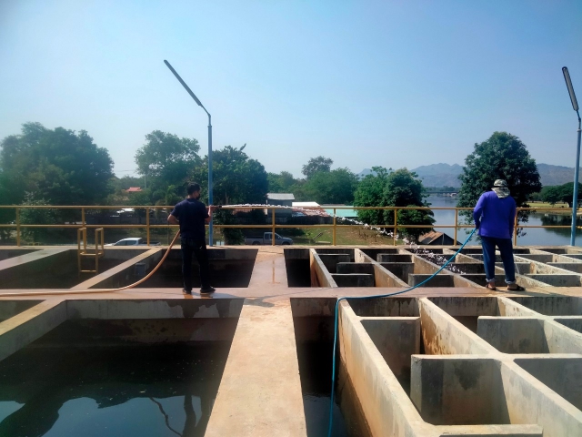วันอังคารที่ 30 พฤษภาคม 2566 กปภ.สาขากาญจนบุรี โดย นายพิชัย พันธุ์อร่าม ผจก.กปภ.สาขากาญจนบุรี มอบหมายให้ นายไพโรจน์ จิระธนานันต์ หัวหน้างาน และทีมงานผลิต ดำเนินการล้างถังตกตะกอนโรงกรอง ประจำเดือน พฤษภาคม เพื่อเป็นการปรับปรุงคุณภาพน้ำประปาให้ใสสะอาดเป็นไปตามมาตรฐานที่กำหนด สร้างความเชื่อมั่นและความประทับใจในการให้บริการแก่ลูกค้า