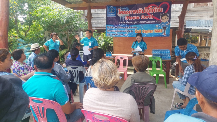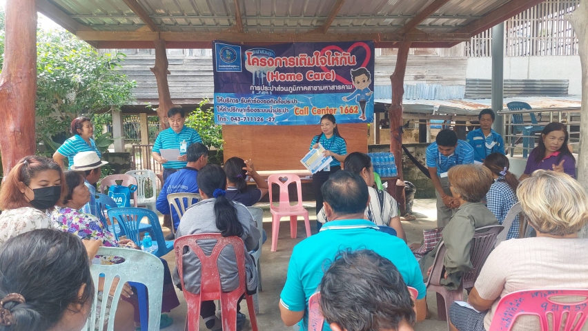 วันที่ 7 มิถุนายน 2566 เวลา 10.00 น. การประปาส่วนภูมิภาคสาขามหาสารคาม นำโดย นายณ เณร วัฒนกูล ผู้จัดการการประปาส่วนภูมิภาคสาขามหาสารคาม และ นายขจรศักดิ์ ทองนาค ผู้ช่วยผู้จัดการการประปาส่วนภูมิภาคสาขามหาสารคาม พร้อมด้วย นางสาวนุชสิรี พิมพสุต หัวหน้างานอำนวยการ นางสาวณัฐรภา มาตรบรรเทา พนักงานการเงินและบัญชี 8 และพนักงานในสังกัด จัดโครงการเติมใจให้กัน ครั้งที่ 7/2566 ณ ศาลากลางบ้าน บ้านดงเค็ง หมู่ที่ 10 ตำบลท่าสองคอน อำเภอเมืองมหาสารคาม จังหวัดมหาสารคาม เพื่อให้บริการลูกค้านอกพื้นที่ ซึ่งกิจกรรมในครั้งนี้ กปภ.สาขามหาสารคาม รับคำร้องติดตั้งผู้ใช้น้ำรายใหม่ ให้ความรู้เรื่องการคิดคำนวณค่าน้ำประปา และของชำร่วยและน้ำดื่ม ประชาสัมพันธ์ช่องทางออนไลน์การชำระค่าน้ำประปา ชำระค่าติดตั้ง และอื่นๆ ให้คำปรึกษาด้านต่างๆ เกี่ยวกับระบบประปา และจัดกิจกรรมรับฟังความคิดเห็นของลูกค้าด้วย