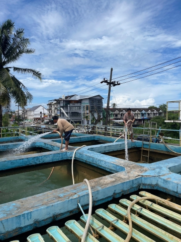 กปภ.สาขาระนอง ดำเนินการตามแผน ล้างถังตกตะกอนโรงกรองน้ำสำนักงาน