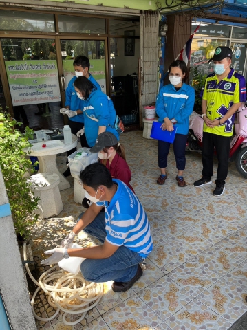 กปภ.สาขาระนอง ร่วมกับ สาธารณสุขจังหวัดระนอง ลงพื้นที่เก็บตัวอย่างน้ำในพื้นที่บริการ ดำเนินโครงการ “ต่ออายุน้ำประปาดื่มได้”