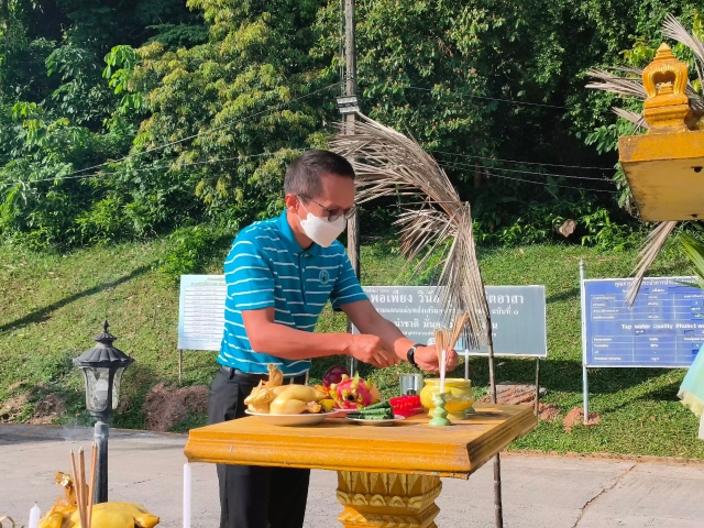 การประปาส่วนภูมิภาคสาขาภูเก็ต ร่วมจัดกิจกรรม พิธีสักการะพระภูมิเจ้าที่ ศาลพระแม่ธรณีวิสุทธิสรรพสักขีบารมีธำรงชล ที่ประดิษฐานบริเวณด้านหน้าอาคารสำนักงาน และพิธีสักการะศาลเจ้าแม่นวลน้องตะเคียนทอง