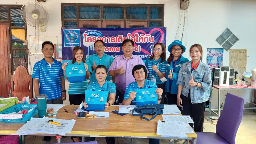 วันที่ 23 มิถุนายน 2566 เวลา 09.30 น. การประปาส่วนภูมิภาคสาขามหาสารคาม นำโดย นาย ณ เณร วัฒนกูล ผู้จัดการการประปาส่วนภูมิภาคสาขามหาสารคาม และนายขจรศักดิ์ ทองนาค ผู้ช่วยผู้จัดการการประปาส่วนภูมิภาคสาขามหาสารคาม พร้อมด้วย นางสาวนุชสิรี พิมพสุต หัวหน้างานอำนวยการ นางรมณีย์ กรมแสง หัวหน้างานจัดเก็บรายได้ และพนักงานในสังกัด จัดโครงการเติมใจให้กัน ครั้งที่ 12/2566 ณ บ้านหนองโดน หมู่ 7 ตำบลหนองสิม อำเภอบรบือ จังหวัดมหาสารคาม เพื่อให้บริการลูกค้านอกพื้นที่ ซึ่งกิจกรรมในครั้งนี้ กปภ.สาขามหาสารคาม รับคำร้องติดตั้งผู้ใช้น้ำรายใหม่ รับชำระเงินค่าติดตั้งประปาใหม่ แจกของชำร่วยและน้ำดื่ม ประชาสัมพันธ์แอปพลิเคชั่น PWA Plus Lite ให้คำปรึกษาด้านต่างๆ เกี่ยวกับระบบประปา และจัดกิจกรรมรับฟังความคิดเห็นของลูกค้า