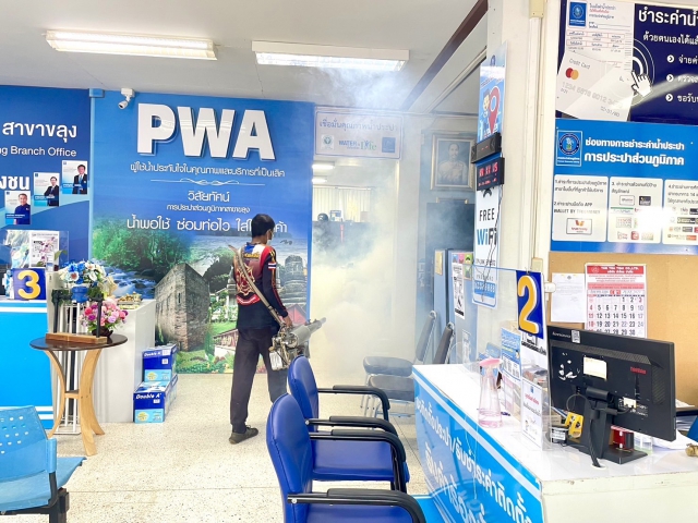 ในวันพุธที่ 28 มิถุนายน 2566 กปภ.สาขาขลุง นำโดย นายจาตุรณต์ คูสว่างศรี ผจก.กปภ.สาขาขลุง พร้อมด้วยหัวหน้างานทุกสายงาน พนักงานและลูกจ้างในสังกัด ร่วมต้อนรับเจ้าหน้าที่เทศบาลตำบลซึ้ง ในการลงพื้นที่ฉีดพ่นหมอกควันกำจัดยุงลาย เพื่อป้องกันการแพร่กระจายของยุงลาย และป้องกันการระบาดของโรคไข้เลือดออก ณ บริเวณโดยรอบสำนักงาน กปภ.สาขาขลุง เนื่องจากสถานการณ์โรคไข้เลือดออกในช่วงนี้ มีแนวโน้มพบผู้ป่วยเพิ่มขึ้นอย่างมาก หลังช่วงสัปดาห์ที่ผ่านมามีฝนตกต่อเนื่องทำให้มีน้ำท่วมขังเป็นแหล่งแพร่กระจายของยุงลายที่เป็นพาหะของโรคไข้เลือกออก ทำให้ทางหน่วยงานที่เกี่ยวข้อง ต้องเร่งป้องกันไม่ให้มีการแพร่ระบาดของไข้เลือดออกในพื้นที่ต่อไป