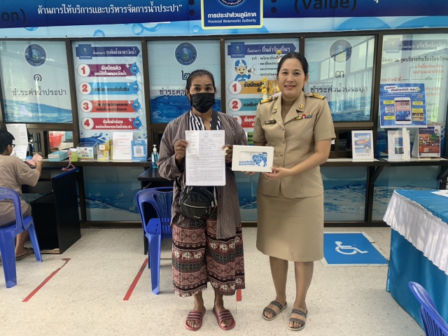 กปภ.สาขาปากพนัง มอบของที่ระลึก ในกิจกรรม "ขอปุ๊บ..รับปั๊บ " ให้กับลูกค้าที่ขอติดตั้งมิเตอร์ใหม่