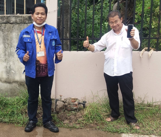 ขณะเดียวกันได้ตรวจสอบค่าน้ำขึ้นสูงมีท่อรั่วบริเวณขามาตรวัดน้ำ ณ บ้านเลขที่ 26/9 ถ.ราชดำเนิน 2 ซ.2 ต.ในเมือง อ.เมือง จ.กำแพงเพชร พบว่า ลูกยางข้อต่อตรง PB ขนาด 20 มม.ชำรุด จึงได้ดำเนินการเปลี่ยนลูกยางข้อต่อตรง PB ขนาด 20 มม.ให้เสร็จเรียบร้อยแล้ว