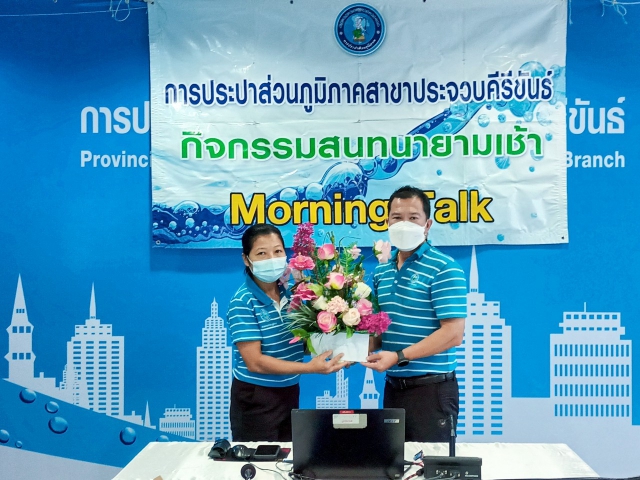 ในวันศุกร์ ที่ 7 กรกฎาคม 2566 การประปาส่วนภูมิภาคสาขาประจวบคีรีขันธ์ นำโดย นายศิริทัย สวัสดิ์อารี ผจก.กปภ.สาขาประจวบคีรีขันธ์ พร้อมด้วยหัวหน้างาน พนักงานและลูกจ้างในสังกัด ร่วมกิจกรรมสนทนายามเช้า (Morning talk) ครั้งที่ 10/2566 ณ ห้องประชุมการประปาส่วนภูมิภาคสาขาประจวบคีรีขันธ์ การจัดกิจกรรมครั้งนี้เพื่อให้เกิดความผูกพันภายในองค์กรได้แลกเปลี่ยนความคิดเห็นระหว่างพนักงาน/ลูกจ้างในสังกัด ผู้จัดการฯ ได้ถ่ายทอดนโยบายจากผู้บริหารให้พนักงานสังกัดรับทราบและนำไปปฏิบัติ ประชาสัมพันธ์แอพลิเคชั่น PWA Plus Life แอพลิเคชั่น ThaiD รายงานผลการดำเนินงานที่ผ่านมา ดำเนินการแจกคู่มือและอบรมให้ความรู้เกี่ยวกับคู่มือว่าด้วยความปลอดภัยในการทำงานให้พนักงานในสังกัด และได้สอบถามปัญหา อุปสรรคในการดำเนินงาน และหาแนวทางการแก้ไขปัญหาร่วมกัน และมอบรางวัลพนักงานบริการดีเด่น (front Office) ได้แก่ น.ส.วัฒนา ดวงเนตร พนักงานการเงินและบัญชี 7 สังกัดงานจัดเก็บรายได้