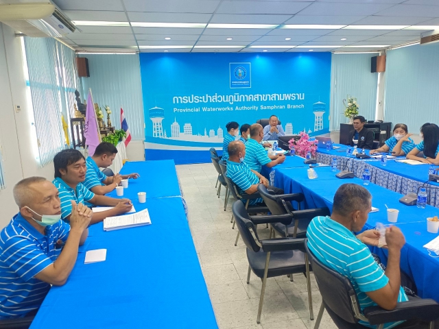 วันอังคาร ที่ 11 กรกฎาคม 2566 กปภ.สาขาสามพราน นำโดยนายหาญณรงค์ เสือสมิง ผจก.กปภ.สาขาสามพราน พร้อมด้วย น.ส.สิริพร กิจวิจารณ์ ผช.ผจก. หัวหน้างานและพนักงานในสังกัด "ร่วมกันจัดกิจกรรม Morning Talk ครั้งที่ 9/2566" เนื้อหาสำคัญในการสนทนา คือ ติดตามผลการดำเนินการที่ต่ำกว่าเป้าหมาย การจัดการลดน้ำสูญเสีย ข้อร้องเรียน ติดตามผลการดำเนินงาน WSP แจกคู่มือความปลอดภัยในการทำงานแต่ละสายงาน พร้อมทั้งปรึกษาหารือปัญหาการทำงานต่างๆ ของแต่ละสายงานเพื่อหาแนวทางแก้ไขร่วมกัน และคัดเลือกดาวเด่นประจำไตรมาส3/2566 คือ น.ส.วรัญญา เฮี้ยนชาศรี ตำแหน่งนักบัญชี 7 งานจัดเก็บรายได้