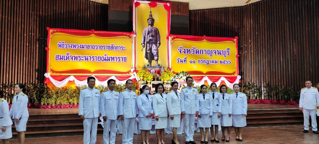 วันอังคารที่ 11 กรกฎาคม 2566 กปภ.สาขากาญจนบุรี โดย นายพิชัย พันธุ์อร่าม ผจก.กปภ.สาขากาญจนบุรี มอบหมายให้ นางสาววรรณวิสา เอิบอิ่ม หัวหน้างานอำนวยการ พร้อมด้วยพนักงานในสังกัด ร่วมงานพิธีวันสมเด็จพระนารายณ์มหาราช และมีการวางพวงมาลาถวายราชสักการะ สมเด็จพระนารายณ์มหาราช ณ ศาลา 60 พรรษามหาราช อำเภอเมืองกาญจนบุรี จังหวัดกาญจนบุรี