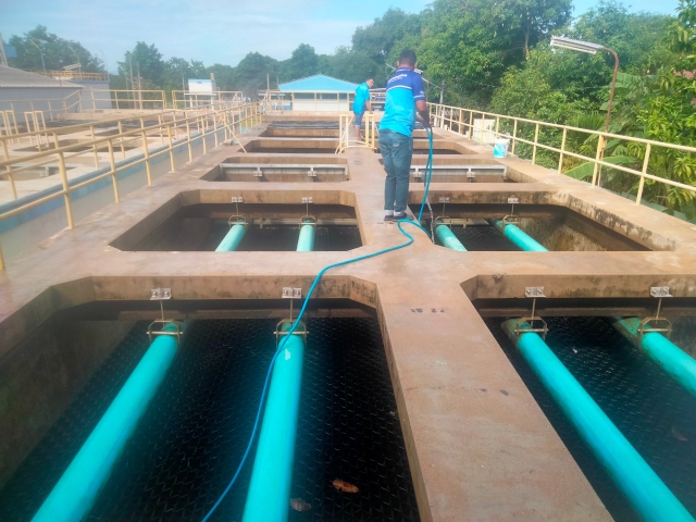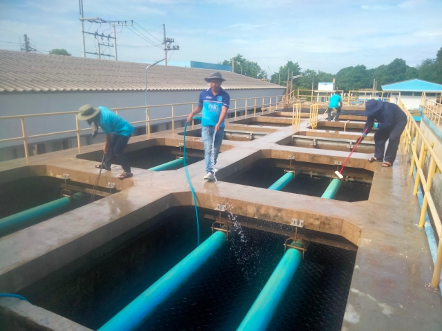 วันพุธที่ 12 กรกฎาคม 2566 กปภ.สาขากาญจนบุรี โดย นายพิชัย พันธุ์อร่าม ผจก.กปภ.สาขากาญจนบุรี มอบหมายให้ นายไพโรจน์ จิระธนานันต์ หัวหน้างาน และทีมงานผลิต ดำเนินการล้างถังตกตะกอนโรงกรอง ประจำเดือน กรกฎาคม เพื่อเป็นการปรับปรุงคุณภาพน้ำประปาให้ใสสะอาดเป็นไปตามมาตรฐานที่กำหนด สร้างความเชื่อมั่นและความประทับใจในการให้บริการแก่ลูกค้า