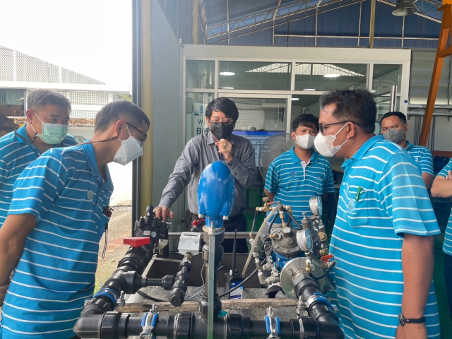 เมื่อวันจันทร์ที่ 10 กรกฎาคม 2566 กปภ.สาขาคลองหลวง โดย นายวินัย สุขสุมิตร ผู้จัดการการประปาส่วนภูมิภาคสาขาคลองหลวง มอบหมายให้นายเกริกฤทธิ์ วอนฤทธิ์ ผู้ช่วยผู้จัดการการประปาส่วนภูมิภาคสาขาคลองหลวง พร้อมด้วย นายคุ้มชนะ อักษรขำ หัวหน้างาน 8 งานบริการและควบคุมน้ำสูญเสีย 1, นายธีระ เกษร หัวหน้างาน 8 งานบริการและควบคุมน้ำสูญเสีย 2 และพนักงานในสังกัดการประปาส่วนภูมิภาคสาขาคลองหลวง เข้าศึกษาดูงาน และเยี่ยมชมบริษัท ยูเอชเอ็ม จำกัด สาขาลำลูกกา ซึ่งเป็นผู้ผลิตและจำหน่ายอุปกรณ์ประปาให้กับการประปาส่วนภูมิภาค โดยมีวิทยากรบรรยายให้ความรู้และสาธิตวิธีการใช้งานอุปกรณ์ต่าง ๆ ที่เกี่ยวข้องกับระบบประปา ซึ่งการศึกษาดูงานครั้งนี้มีวัตถุประสงค์เพื่อเป็นการส่งเสริมให้พนักงานได้มีความรู้ความเข้าใจเกี่ยวกับอุปกรณ์ประปา และเพื่อเพิ่มสมรรถนะความสามารถในการปฏิบัติงานให้บรรลุเป้าหมายต่อไป