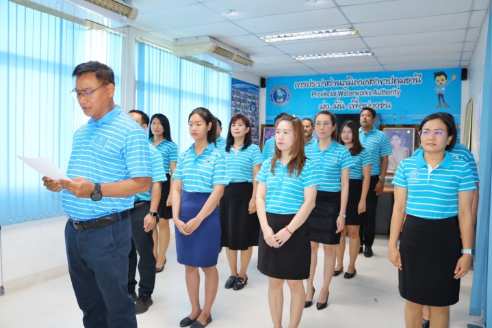 วันที่ 25 กรกฎาคม 2566 การประปาส่วนภูมิภาค สาขาปทุมธานี นำโดยนายกฤษณ์ ก้อนนาค ผู้จัดการ กปภ.สาขาปทุมธานี พร้อมด้วยผู้ช่วยผู้จัดการฯ หัวหน้างาน และพนักงานในสังกัด ร่วมกันจัดพิธีถวายสัตย์ปฏิญาณฯ และลงนามถวายสัตย์ปฏิญาณฯ เพื่อเป็นข้าราชการที่ดีและพลังของแผ่นดินเนื่องในโอกาสวันเฉลิมพระชนมพรรษาพระบาทสมเด็จพระเจ้าอยู่หัว 28กรกฎาคม 2566 ณ บริเวณจุดลงนามถวายพระพร สำนักงานการประปาส่วนภูมิภาคสาขาปทุมธานี #มุ่งมั่นเพื่อปวงชนสู่ความยั่งยืน #การประปาส่วนภูมิภาคสาขาปทุมธานี