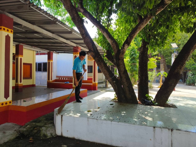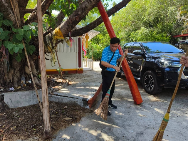 การประปาส่วนภูมิภาคสาขาฮอด จัดกิจกรรมถวายเทียนจำนำพรรษา ประจำปี 2566 กิจกรรมจิตอาสาทำความสะอาดลานวัด