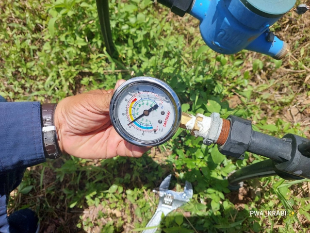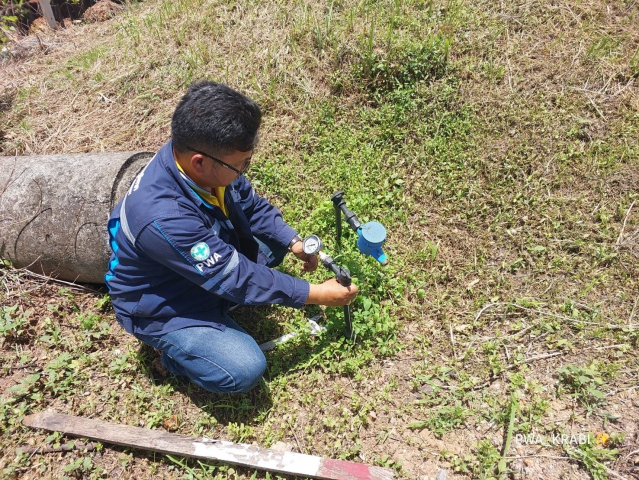 วันจันทร์ ที่ 21 สิงหาคม พ.ศ. 2566 การประปาส่วนภูมิภาคสาขากระบี่ นำโดยนางนุชนภา พิณทอง ผู้จัดการการประปาส่วนภูมิภาคสาขากระบี่ นายณัฐพล กองประดิษฐ ผู้ช่วยผู้จัดการการประปาส่วนภูมิภาคสาขากระบี่ มอบหมาย นายชาติชาย มีชัย ตำแหน่ง หัวหน้างานบริการและควบคุมน้ำสูญเสีย และเจ้าหน้าที่ในสังกัด ดำเนินการตรวจสอบแรงดันน้ำ บริเวณ สามแยกบ้านทับพล หมู่ที่ 7 ตำบลเขาพนม อำเภอเขาพนม จังหวัดกระบี่ เพื่อตรวจสอบแรงดันน้ำที่เหมาะสมตามมาตรฐานการให้บริการของกปภ. ซึ่งผลการตรวจสอบอยู่ในเกณฑ์มาตรฐานที่ กปภ.กำหนด