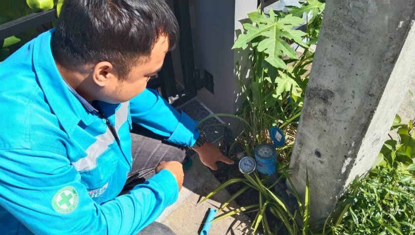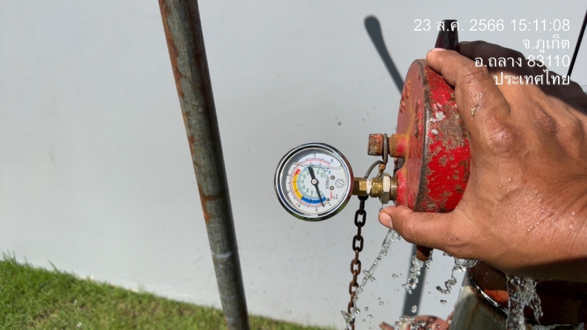 การประปาส่วนภูมิภาคสาขาภูเก็ต ร่วมกับ บริษัท เอเชีย อินฟราสตรักเชอร์ แมเนจเม้นท์ (ประเทศไทย) จำกัด (โครงการจัดการลดน้ำสูญเสีย) ดำเนินการวัดแรงดันน้ำประปา ระบายตะกอน และตรวจสอบคุณภาพน้ำ ในพื้นที่ บริเวณหมู่บ้านสิริ เพลส แอร์พอร์ต
