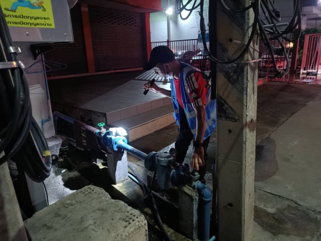 นางราตรี อักษรอินทร์ ผจก.กปภ.สาขาอ้อมน้อย พร้อมด้วยนายปกรณ์ บัวทอง ผช.ผจก. พร้อมด้วยหัวหน้างานบริการและควบคุมน้ำสูญเสียและพนักงานในสังกัด ร่วมกับบริษัทผู้รับจ้าง ลงพื้นที่ทำ Step Test and Zero Test โดยค้นหาจุดแตกรั่วของท่อประปา ด้วยวิธีการแบ่งเป็นพื้นที่ย่อย ทำการสำรวจหาท่อแตกรั่วในพื้นที่ที่มีน้ำสูญเสียทั้งบนดินและใต้ดิน โดยใช้เครื่องมือสำรวจหาจุดท่อแตกรั่ว ตรวจสอบการใช้งานท่อ อุปกรณ์และประตูน้ำในระบบจ่ายน้ำประปา รวมทั้งทดสอบแรงดันน้ำ และดำเนินการซ่อมจุดแตกรั่วบริเวณนั้นต่อไป จึงจำเป็นที่ต้องปิดน้ำในบางพื้นที่ เพื่อบำรุงรักษาระบบให้สามารถใช้งานได้อย่างมีประสิทธิภาพ เมื่อคืนวันพุธ ที่ 23 สิงหาคม 2566 ตั้งแต่เวลา 23.00 น. ถึงเวลา 02.00 น.ของเช้าวันพฤหัสบดี ที่ 24 สิงหาคม 2566 ณ บริเวณ ตำบลทรงคนอง ตำบลมหาสวัสดิ์ ตำบลบางเตย และตำบลศาลายา (DMA 16 , DMA 21 , DMA 24 , DMA 25)