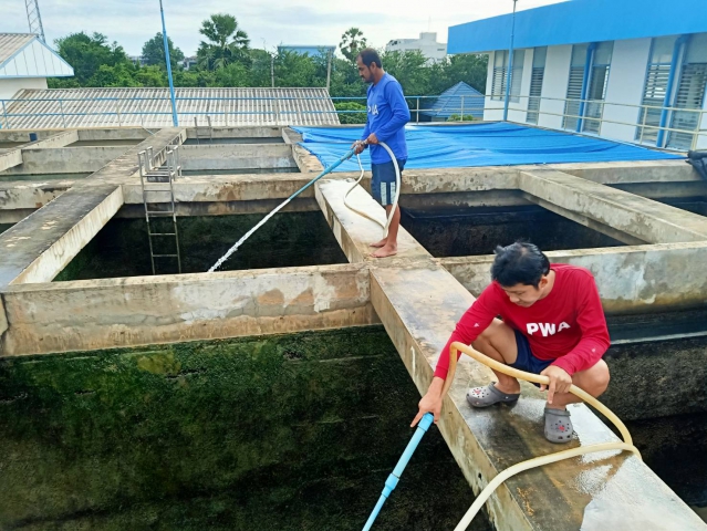 วันที่ 21 และ 23 สิงหาคม 2566 นายนพฤทธิ์ ยศตีนเทียน ผจก.กปภ.สาขาอู่ทอง มอบหมายให้หัวหน้างานผลิตและพนักงานในสายงาน ร่วมกันล้างถังตกตะกอน เพื่อน้ำประปาที่ใสสะอาดตามโครงการจัดการน้ำสะอาด (WSP) ได้มาตรฐาน กปภ. และสร้างความมั่นใจให้แก่ลูกค้าในการใช้น้ำประปา ประจำเดือน สิงหาคม 2566 ณ สถานีผลิตน้ำสระยายโสม ต.สระยายโสม และสถานีผลิตน้ำแม่ข่ายอู่ทอง อ.อู่ทอง จ.สุพรรณบุรี
